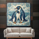 Art Deco Penguin Ice Bird Couple Snow Ocean Floral