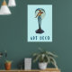 Um clássico poster de Arte da era do design legal e estilo. A estátua de metal é uma figura feminina com uma grande morada em pé, alto e real.