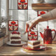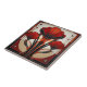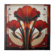 Beautiful ceramic tile with 3 red Art Deco, Art Nouveau floral design. Beautiful image that can be transferred to create, trivets, napkins, paper plates and more.