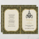 Art Deco seigaiha chandelier dobrou cerimônia de casamento e programa de festas. Este elegante modelo do programa clássico de casamento apresenta um padrão japonês de onda seigaiha em ouro e preto, um candelabro em bege/nu e uma fronteira com Art Deco. Uma abordagem contemporânea ao estilo Gatsby do Excelente. Dobre no centro. Esse tipo de valor de papel se dobra bem, então, escolha apenas isso.