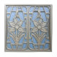 This elegant design moves slightly from pure abstraction to incorporate a stylized floral motif, reminiscent of classic Art Deco and later Mid-Century Modern sensibilities. The composition features two symmetrical lilies framed by strong, rectilinear and arched metal-look structures. Set against a clean, calming blue background, the detailed silver-tone lilies and framework create a sophisticated, high-relief effect. This piece is ideal for adding a touch of timeless, structured elegance to any tile display or accent area. Search ID1196 to see other designs in this series. Note: design adapted from generative content.