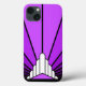 Um padrão solar clássico de deco de arte criado em roxo. Um padrão icônico da ascensão solar por trás de um edifício estilizado em forma de arte. Um design simples, mas elegante, verdadeiro à era.