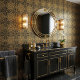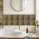 Add a touch of vintage glamour to your space with this stunning Art Deco ceramic tile. Featuring a striking gold sunburst pattern set against a deep black background, this design evokes the elegance and sophistication of the Roaring Twenties. The intricate geometric lines and radiating rays create a mesmerizing visual effect, perfect for adding a statement piece to any room. This tile is ideal for accent walls, backsplashes, or decorative accents, bringing timeless style and luxury to your home decor. Its bold contrast and metallic sheen make it a true conversation starter.