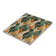 Bold Art Deco–inspired pattern ceramic tile featuring layered geometric forms in teal, deep green, charcoal, and warm gold tones. A sophisticated retro design with a moody, upscale aesthetic—ideal for vintage decor lovers, modern interiors, and statement gifts for fans of timeless 1920s style.