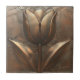 Um azulejo de cerâmica que apresenta uma tulipa de deco de arte num acabamento de cobre, em relação a um fundo de efeito de pedra. A mistura de elegantes elementos metálicos e de pedra rústica oferece um design único e na moda, ideal para os interiores modernos e clássicos.