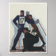 Poster de Esqui Art Deco Vintage com esquiadores competitivos,