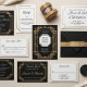 Elegant Art Deco wedding RSVP card featuring bold geometric borders and a sophisticated gold-and-black palette. Designed with timeless 1920s flair, this card is perfect for collecting guest responses, attendance confirmations, and meal selections. Fully customizable template with editable text fields. Coordinates with the Art Deco Wedding Invitation Suite for a cohesive, glamorous presentation.