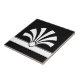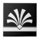 Estilo de deco de arte branca esbranquiçada elegante ornamento geométrico do elemento de flor num azulejo de cerâmica decorativa em fundo preto. Design chic elegante, perfeito para um interior moderno ou de arte deco retro estilo vintage.