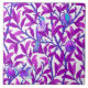 Azulejo em uma tapeçaria do William Morris Art Nouveau de aves exóticas em uma árvore romã, com folhas violeta e roxa ametista, pássaros e frutas em azul-turquesa, violeta e cobalto e um fundo branco