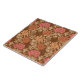 Azulejo em uma vintage William Morris, Art Nouveau, impressão floral de crisântemos estilizados, melhorado digitalmente e colorido, em bronzeado, ferrugem, terracota, e coral, sobre um fundo castanho de chocolate profundo