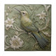 Adicione um toque da natureza ao seu projeto com este belo alivio-beija-flor Art Nouveau falso em azulejo decorativo de parede cerâmica em tons de verde-sábio e creme branco com flores e caules. Feijão virado para a esquerda para combinar com designs simétricos.