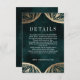 Art Nouveau faux gold Wedding Detalhes do convite Inserir cartão, um belo design, com padrões intrincados junto a um texto impressionante. Perfeito para o drama com uma sugestão de luxo gótico. Carvões, esmeraldas escuras e fundos de cinza, com uma escolha de detalhes de efeito de folha de alumínio. A suíte se encaixa bem com envelopes brancos nítidos e bandas de barriga correspondentes, ou, para adicionar luxo, escolha um dos envelopes complementares para obter o máximo efeito. Veja aqui toda a suíte correspondente https://bit.ly/2GX1wCJ