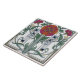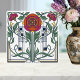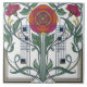 Embrace the elegance of the Art Nouveau era with this stunning ceramic tile design. Featuring a stylized rose at its center, framed by intricate geometric patterns and lush green foliage, this artwork evokes a sense of natural beauty and sophisticated design. The vibrant color palette, with its warm oranges, deep pinks, and rich blues, creates a striking visual appeal that will enhance any space. Perfect for adding a touch of vintage charm and artistic flair to your home decor, this tile is a true statement piece.