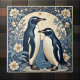 The Art Nouveau Ice Birds - Penguin Couple Blue Ceramic Tile is a striking decorative surface piece that unites two of the most influential design movements of the late nineteenth and early twentieth centuries. Featuring a poised penguin couple rendered in cool icy blue water, soft ivories, and deep midnight accents, this ceramic tile transforms the austere beauty of polar life into a sophisticated design statement suitable for contemporary and classic interiors alike.