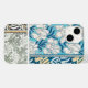 Uma elegante arte nouveau vintage arte têxtil com lírios e iretos. Em cores de azul, cinza, amarelo e branco.