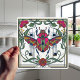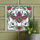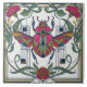 This exquisite ceramic tile features a stunning Art Nouveau design, showcasing a vibrantly colored jewel beetle at its center, encircled by an elegant floral border of stylized pink blossoms and lush green leaves. The intricate geometric patterns within the beetle's wings and body, combined with the organic flow of the surrounding flora, create a timeless piece of art. Perfect for adding a touch of vintage charm and natural beauty to any space, this tile evokes the opulence and craftsmanship of the Art Nouveau era, making it a unique decorative accent.