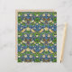 Papel em um padrão de tapeçaria de William Morris Art Nouveau de aves estilizadas, flores, morangos e folhas em tons suaves de azul, verde, bege e bronzeado em um fundo azul-indigo escuro