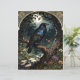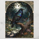 A raven with fantastic, irridescent feathers perches in a gnarled tree under a full moon. An art nouveau arch frames the scene. The back is plain dark green, without an image or texture. Beautiful, Gothic image.