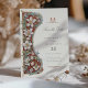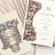 Esta elegante placa "Save the Date" apresenta um design de Arte Nouveau espantoso, adornada com lírios brancos intrincados e folhagem esmagadora contra um fundo vermelho impressionante. O quadro de marfim suave e os sotaques verdes criam um equilíbrio harmonioso, combinando encantos de vintage com um toque romântico moderno. A frente apresenta os principais detalhes do casamento em um estilo delicado e ornamentado, enquanto a parte de trás exibe um intrincado motivo floral que espelha a beleza da natureza. Perfeito para casais que procuram um anúncio de casamento luxuoso e artístico, este cartão oferece uma primeira impressão inesquecível para o seu dia especial.