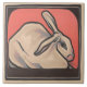 Adaptado de uma antiga trabalho de arte de madeira cortada pela artista Julie De Graag Eu aprimorei digitalmente esta imagem para o que ela poderia ter parecido pintada em um azulejo de cerâmica. Este é um coelho bonito no estilo vintage em um fundo rosa com uma imagem escura e adicionará um charme de toque de arte novo ao seu projeto de azulejo.