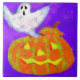 Minha pintura abstrata funky de um fantasma saindo de uma abóbora torna este azulejo de cerâmica uma colorida obra de arte de Halloween!