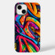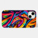 Capa de telefone legal com um padrão abstrato em estilo grafite em azul, rosa, amarelo e verde.