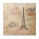 A arte da torre Eiffel do vintage do primavera em Paris com a árvore de cereja cor-de-rosa bonito floresce no fundo, nas ilustrações da torre Eiffel e de uma antiguidade da bicicleta, em uma folha velha da canção chamada "Paris no primavera", em borboletas, em uma andorinha que levam uma carta de amor, e na rotulação retro do cartão com uma marca postal dos dias velhos. Os redemoinhos florais terminam este design feminino do vintage de Paris romântica na primavera. Eu amo o tempo de Paris na primavera… como sobre você?