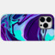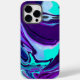Pour painting style abstrato fluid art em azul, roxo, lacre e turquesa.