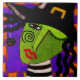 Minha pintura colorida de abstrato de uma bruxa com uma aranha pendurada no seu chapéu faz deste azulejo cerâmico uma obra engraçada de arte do Halloween!