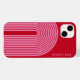 Um design boho com um padrão listrado e formas circulares em vermelho e rosa. Um design ousado, mas mínimo, com uma área opcional para adicionar texto.