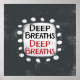 Um design tipográfico bonito que diz "Respiração Profunda, Respiração Profunda". É texto preto e vermelho em um quadrado branco com pontos brancos engraçados e brincalhões ao seu redor, tudo em um fundo de cinza.