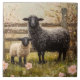 Uma pintura animadora de uma ovelha gentil e seu cordeiro lúdico num campo de primavera cheio de verde fresco e flores silvestres florescentes. Esta encantadora paisagem rural captura o calor e a renovação da primavera na fazenda.