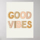 Ilumine seu espaço com nossa impressão Boas Vibrações. Cores: dourado, marrom e rosa com ferrugem. Misture e combine com nossas outras coleções.