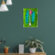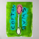 Um fundo de verde limão rodeia esta divertida e colorida esfregona de algodão, a arte perfeita do banheiro para casa ou escritório. Realces rosa-quente, amarelo e azul com texto infantis rastejado completam a imagem.