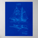 Impressão em veleiro com fundo azul de papel gráfico. Este é o design nº 2 da nossa série.