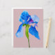 Uma pintura moderna de aquarela fluida do artista Sacha Grossel, de uma flor azul da íris. Este simples design elegante é de uma ilustração pintada manualmente. Moderno, de festa e design floral.