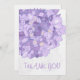 Cartões de nota artísticos. A design floral tem uma grande lavanda de flor de hydrangea roxa na frente com texto de "obrigado você". Adicione um monograma inicial ao verso e escreva uma nota pessoal.