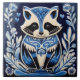 guaxinim, "arte folk", "marinho escuro azul e branco", "arte monocromática monocromática", "flores florais botânicas", "flor floral", "animais selvagens da floresta", "animal da criatura florestal", "guaxinins cerâmica azulejo", "cerâmica de vintage pintada"