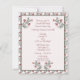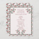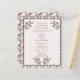 Um bonito convite de festas de Natal de arte popular escandinava, a rosa pálido, com detalhes florais cor-de-rosa e burgundy e verdes. Os detalhes são colocados em uma armação verde que tem florais nos cantos superiores e no fundo.