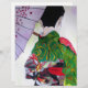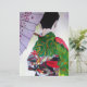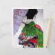 De uma pintura original a aquarela do artista Sacha Grossel, de uma Geisha Japonesa, com um quimono verde e elegante e um obi preto e vermelho segurando um guarda-chuva roxo decorado com flores. Esse design inspirado em japonês e Kyoto é influenciado pela arte oriental e asiática e pelo tradicional design da moda japonesa.