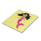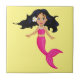 Cartoon de arte rosa de sereia de uma gira-sereia com cabelo preto e uma cauda cor-de-rosa sobre um fundo de cor personalizável.