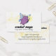 Fada mágica voadora super fofa que poderia ser um animal, monstro ou elfo, segurando um gancho de crochê, tem asas de borboletas e espadelões de estrelas brilhantes nesta cartão de visita para produtos crochetados, criadores de padrões, artesanatos de fios e artesanato.