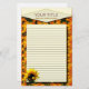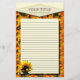 Girassol amarelo brilhante contra um teste padrão alaranjado do fundo dos girassóis. Artigos de papelaria customizáveis alinhados com área na parte superior para o título e o subtítulo -- ou escolha seu próprio texto entrar.