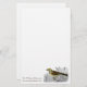 Decorado com uma imagem do vintage de um pássaro pequeno, amarelo (dickcissel) em um fundo preto e branco e de uns campos customizáveis do texto para sua informação do nome e do contato. Este papel dos artigos de papelaria da assinatura tem um elegante e o design um tanto masculino, aperfeiçoa para os amantes do pássaro ou os artigos de papelaria de um homem ajustados. Os amantes de natureza, os caçadores, os observadores de pássaro e os membros do audubon podem todos apreciar este papel personalizable, amarelo dos artigos de papelaria do pássaro.