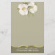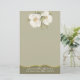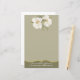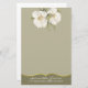 Artigos de papelaria silenciado elegantes do verde de musgo, com os gráficos fracos de duas flores brancas da magnólia que decoram a parte superior. Uma beira goldtone decorativa, na parte inferior forma o pé de página, com o texto branco feito sob encomenda pronto para personalizar. Artigos de papelaria diários bonitos ou para ocasiões especiais. Faz um presente agradável demasiado.