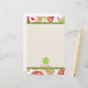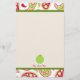 Artigos de papelaria que caracterizam uma beira cor-de-rosa e verde de paisley sobre a parte superior e a parte inferior com guarnição verde. Personalize com seu nome no fundo sob a ilustração da maçã verde.