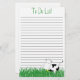 Artigos de papelaria para fazer o modelo da lista com a vaca louca cartoonish e grama verde
