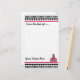 Artigos de papelaria que caracterizam um design do houndstooth através da parte superior e da parte inferior com guarnição cor-de-rosa. Logotipo cor-de-rosa da escola no canto direito inferior. O texto superior lê "da mesa ......." do texto inferior lê "seu nome aqui" que todo o texto pode ser personalizado. A cor, o estilo, o tamanho, e a posição da pia batismal podem ser mudados usando a ferramenta de design.