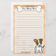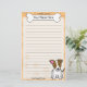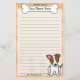 Divertimento Kawaii Jack Russell Terrier com uma raça do cão dos desenhos animados no canto direito mais baixo. Este cão tem uma cabeça marrom com uma chama branca. A parcela superior pode imediatamente ser personalizada com seu nome dentro do osso grande do cachorrinho. O fundo da beira e do papel é alaranjado.