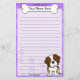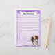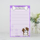 Artigos de papelaria de Kawaii St Bernard do divertimento com uma raça do cão dos desenhos animados no canto direito mais baixo. A parcela superior pode imediatamente ser personalizada com seu nome dentro do osso grande do cachorrinho. O fundo da beira e do papel é roxo.